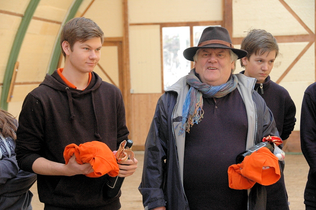 Im Anschluss überreichten der Jugendsprecher Milan Seehausen und ich an den noch amtierenden Jugendwart NRW Dirk Beckschulte und den Kaderbeauftragten Jugend NRW Michael Vierhaus ein kleines Abschiedspräsent. Sie beide beenden in diesem Jahr ihre Arbeit beim NRW -Verband. Es wurden orangefarbene NiSa - Trikots mit den Unterschriften aller in den vergangenen Jahren spielenden Jugendspielern überreicht, dazu eine Flasche Wein.