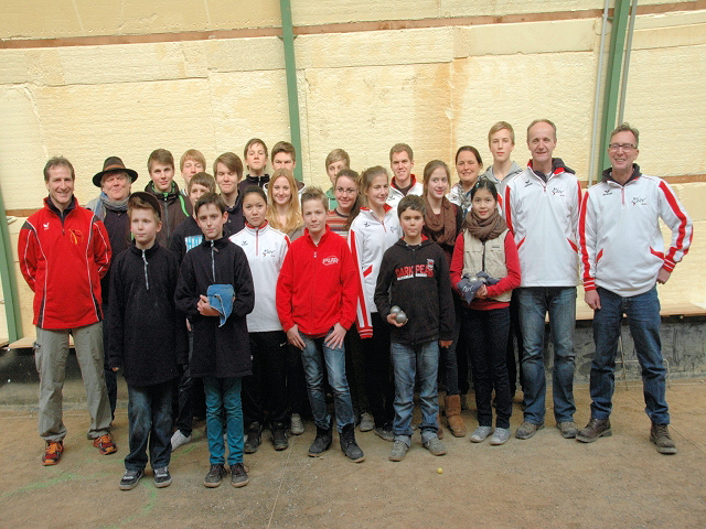 und NiSa Am 12.01. und 13.01.2013 fand das erste gemeinsame Trainingswochenende des Jahres mit den Landesverbänden NiSa und NRW in Essen statt. Das Training leitete der Bundestrainer Bernd Wormer. Freitagabend trafen sich alle Teilnehmer gegen 18:00 Uhr in der Jugendherberge Essen – Werden. Nach der Begrüßung wurden die Zimmer belegt und es gab ein gemeinsames Abendessen in der Jugendherberge, das die Kinder dazu nutzten, um sich auszutauschen und die Neuen zu beschnuppern. Dirk Beckschulte und Sven Lübbke hatten im vergangenen Jahr an einem Coachingseminar des DPV teilgenommen, das Bernd Wormer leitete. Dabei entstand die Idee, das Trainingswochenende der Jugend am Abend mit Theorie zu füllen. Bernd war sofort bereit, dies zu übernehmen und so startete der Trainingslehrgang am Freitagabend um 20:00 Uhr mit dem Thema, was ist Coaching? Die Kinder und Jugendlichen waren begeistert bei der Sache und füllten Fragebögen aus, die danach besprochen wurden. Im Anschluss wurde in die Diskussion eingestiegen, was ist Coaching, warum steht da einer und wie kann man diesen vierten Mann oder Frau sinnvoll einbinden. Welche Hilfestellung kann ich erwarten, was darf der Coach und wie kann er uns helfen. Die Jugendlichen waren mit Feuereifer dabei und arbeiteten sehr ernsthaft und diszipliniert an diesem Thema mit. Gegen 22:00 Uhr endete der erste Teil und die Jugendlichen begaben sich auf ihre Zimmer. Samstagmorgen 08:00 Uhr trafen sich alle zum Frühstück, gegen 09:00 Uhr war die Abfahrt zur Boulehalle in Essen- Kettwig. Die neue Boulehalle in Essen war bestens von den Essenern vorbereitet worden. Die Jugendlichen wärmten sich unter Anleitung von Bernd Wormer auf, währenddessen bauten die Helfer und Betreuer die unterschiedlichsten Ateliers auf. Schwerpunkt des Trainingswochenendes waren Lege- und Taktikübungen. Die Jugendlichen waren in Dreiergruppen eingeteilt worden und durchliefen die unterschiedlichen Ateliers. Bernd Wormer bekam von Dirk und mir immer drei Teilnehmer geschickt, mit denen Bernd an einer Taktikstation arbeitete. Sie bekamen alle die gleiche Aufgabe gestellt, alle drei mussten dann ihre Lösungsvorschläge diskutieren, wobei die Zeitregel außer Kraft gesetzt war. Im Anschluss wurde dann von jedem versucht, seine Taktikvorgabe mit seinen beiden Kugeln zu lösen. Nach dem gemeinsamen Mittagessen wurden neue Ateliers aufgebaut, die wieder von allen Spielern zu absolvieren waren. Gegen 18:00 Uhr wurde der Praxisteil beendet und es ging zum Abendessen zum Griechen. Um 20:30 Uhr wurde der zweite Theorieblock begonnen. Sandra Schneider aus NRW übernahm die Betreuung der vier jüngsten Teilnehmer, sie spielten Tischtennis und Montagsmaler, da sie noch ein bisschen zu jung sind, für das, was die Älteren dann erarbeiten durften. Bernd Wormer arbeitet bei der dpj mit einer Mentaltrainerin zusammen. Martina Feistel war zufällig in der Nähe von Essen und hatte sich spontan bereit erklärt, mit den Jugendlichen das Thema Mentaltraining anzugehen. Nicht nur die Jugendlichen waren gespannt darauf, zu erfahren, was es mit der mentalen Einstellung auf sich hat, auch die anwesenden Betreuer platzten vor Neugierde. Martina Feistel arbeitete mit den Jugendlichen daran, was das Gehirn beeinflusst und wie man das Gehirn steuern und lenken kann. Wie kann man mit positiven Stimmungen das Spiel verbessern und wie lassen sich negative Strömungen vermeiden, was kann man tun, um sich – nach negativen Spielsituationen – wieder neu zu motivieren? Welche Ziele man hat und wie lassen sich diese Ziele erreichen und verwirklichen? Die Jugendlichen arbeiteten konzentriert mit, aber auch die Betreuer hingen an den Lippen von Martina. Sie schaffte es, trotz der späten Stunde die Kinder zu begeistern. Ich war begeistert von ihrem, leider viel zu kurzem Auftritt und überlege gerade, wie man Mentaltrainer in unserem Sport mehr einbinden kann, denn gerade beim Petanquesport ist meiner Meinung nach die mentale Stärke ein wichtiger Punkt. Vielen Dank an Martina Feistel, die ihre Freizeit geopfert hat, um uns einen Einblick in ihre Arbeit zu geben. Um 22:30 Uhr endete der zweite Theorieteil und die Jugendlichen gingen erschöpft ins Bett. Sonntag, der ganz normale Wahnsinn, 08:00 Uhr Frühstück, Betten abziehen, Zimmer klar Schiff machen, Sachen packen und Abfahrt zur Halle um 09:00 Uhr. Das Aufwärmprogramm leitete der Jugendsprecher in NRW Moritz Leibelt, so dass die Betreuer wieder Zeit fanden, neue Ateliers aufzubauen. Es ging natürlich getreu dem Motto: Legen, Legen, Legen weiter mit Legeübungen! Nach einer Pizza zum Mittagessen wurde das gemeinsame Trainings-wochenende um 13:30 Uhr beendet. Die Halle wurde aufgeräumt, das Trainingsmaterial verstaut und Bernd Wormer beendete mit einer kleinen Rede das Wochenende. Im Anschluss überreichten der Jugendsprecher Milan Seehausen und ich an den noch amtierenden Jugendwart NRW Dirk Beckschulte und den Kaderbeauftragten Jugend NRW Michael Vierhaus ein kleines Abschiedspräsent. Sie beide beenden in diesem Jahr ihre Arbeit beim NRW -Verband. Es wurden orangefarbene NiSa - Trikots mit den Unterschriften aller in den vergangenen Jahren spielenden Jugendspielern überreicht, dazu eine Flasche Wein. Ich selbst habe von den Beiden in den letzten Jahren sehr profitiert, sie haben mir den Einstieg in die Jugendarbeit sehr erleichtert, mir geholfen Strukturen und Trainingsangebote zu schaffen. Die Zusammenarbeit erstreckte sich nicht nur auf gemeinsame Jugendtrainings-veranstaltungen, sondern ging weit darüber hinaus. Auch die Jugendlichen der beiden Verbände schlossen Freundschaften und planten private Veranstaltungen, all dies war von uns so gewollt. Trotz dieser Freundschaften war auf beiden Seiten der sportliche Erfolg für die Jugendlichen immer vordergründig, es wurde um jeden Punkt gekämpft und gestritten. Nach den Spielen wurden die Freundschaften sofort wiederbelebt, neue Spieler immer und immer wieder integriert und akzeptiert. Die gemeinsam