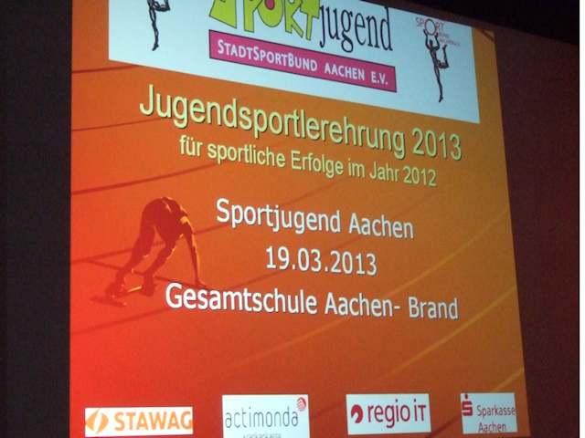 Pétanque-Sport in Aachen, die dritte Anna Nguyen (Minimes) und Hanh Nguyen (Cadets) wurden am 19. März 2013 für Ihren Landesmeister-Titel 2012 von der Stadt Aachen und der Sportjugend geehrt. Zum dritten Mal wurde auf der nun zum siebten Mal stattfindenden Aachener Jugendsportlerehrung die begehrte Medaille entgegen genommen (zuletzt im April 2012 für den Titel des Deutschen Vizemeisters im Jahre 2011). Der Oberbürgermeister der Stadt Aachen Marcel Phillip war wie jedes Jahr unter den Ehrengästen um die Jugendlichen mit Urkunden und Medaillen zu ehren. (aha!, daher der Begriff „Ehrengast...“). Insgesamt waren auf der diesjährigen Jugendsportlerehrung der Stadtsportjugend Aachen 136 jugendliche Sportler von verschiedenen Sportdisziplinen in drei Ehrungskategorien (Bezirks-, Landes-, und Deutscher Meister) geehrt worden. Cuong Nguyen |