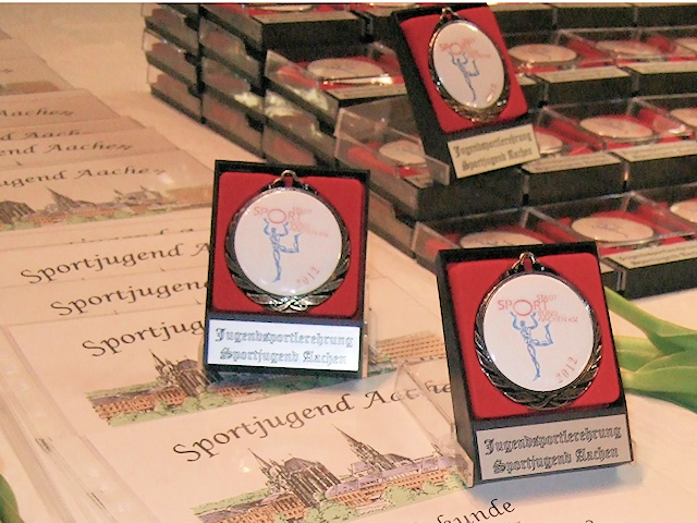 Pétanque-Sport in Aachen, die dritte Anna Nguyen (Minimes) und Hanh Nguyen (Cadets) wurden am 19. März 2013 für Ihren Landesmeister-Titel 2012 von der Stadt Aachen und der Sportjugend geehrt. Zum dritten Mal wurde auf der nun zum siebten Mal stattfindenden Aachener Jugendsportlerehrung die begehrte Medaille entgegen genommen (zuletzt im April 2012 für den Titel des Deutschen Vizemeisters im Jahre 2011). Der Oberbürgermeister der Stadt Aachen Marcel Phillip war wie jedes Jahr unter den Ehrengästen um die Jugendlichen mit Urkunden und Medaillen zu ehren. (aha!, daher der Begriff „Ehrengast...“). Insgesamt waren auf der diesjährigen Jugendsportlerehrung der Stadtsportjugend Aachen 136 jugendliche Sportler von verschiedenen Sportdisziplinen in drei Ehrungskategorien (Bezirks-, Landes-, und Deutscher Meister) geehrt worden. Cuong Nguyen |