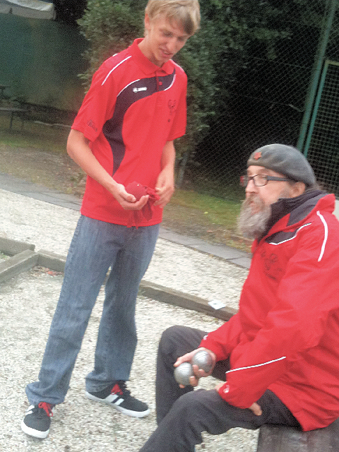 zu bestreiten. Nach 4 Runden Schweizersystem kam die Siegerehrung mit Wichtelgeschenken. Marvin Dünnwald und Wolfgang Kleinert hatten alles gewonnen und wurden somit verdient Tagessieger. Den 2. Platz erzielte Sara Gemünd mit Dirk Beckschulte, ex Jugendwart. (Ja der Dirk darf jetzt auch mal mitspielen.) Auf dem 3. Platz kam Jonas Madai mit Vater Volker. Ein herzliches Dankeschön gilt Heinz Quast von der Boulehalle in Aachen Lichtenbusch, der mir mit Rat und Tat zur Seite stand und die Turnierleitung mitgestaltet hat. Cuong Nguyen |