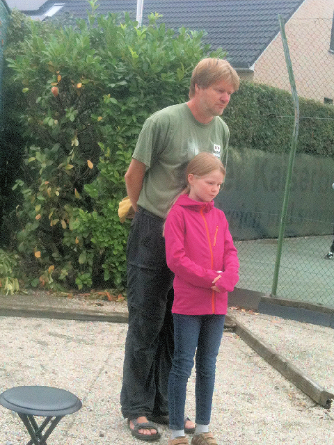 zu bestreiten. Nach 4 Runden Schweizersystem kam die Siegerehrung mit Wichtelgeschenken. Marvin Dünnwald und Wolfgang Kleinert hatten alles gewonnen und wurden somit verdient Tagessieger. Den 2. Platz erzielte Sara Gemünd mit Dirk Beckschulte, ex Jugendwart. (Ja der Dirk darf jetzt auch mal mitspielen.) Auf dem 3. Platz kam Jonas Madai mit Vater Volker. Ein herzliches Dankeschön gilt Heinz Quast von der Boulehalle in Aachen Lichtenbusch, der mir mit Rat und Tat zur Seite stand und die Turnierleitung mitgestaltet hat. Cuong Nguyen |