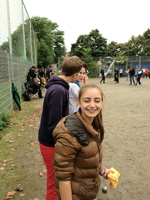 Deutschen Jugendmeisterschaft in Mannheim-Käfertal Erfolgreiches Wochenende für die NRW-Jugend Deutscher Juniorenmeister Julia Reimers - Carl Rost - Lasse Stentenbach 3. Platz Minimes Joana Odenwälder - Finja Rieks - Jonas Madai Zur diesjährigen Jugend-DM fuhren wir mit insgesamt 10 Teams aus NRW. Wir trafen uns Freitag um 14.00 Uhr in Ratingen-Lintorf zur gemeinsamen Anreise mit 4 Kleinbussen und sammelten in Köln noch einige Mitspieler ein, ehe wir nach Mannheim durchstarten konnten. Um 18:30 waren wir endlich am Hotel. Wir beeilten uns, die Zimmer zu belegen, da wir noch eine Platzbesichtigung vornehmen wollten. Die Bouleanlage des SC Käfertal war riesig, die Plätze leicht sandig und gut bespielbar. Unsere Jugendlichen haben am gleichen Abend noch eine Trainingseinheit eingelegt und waren allgemein recht zufrieden mit den Platzverhältnissen. Die Organisation des SC Käfertal war bombastisch. Viele fleißige Helfer boten bereits am Freitag eine Vielzahl an Speisen und Getränken. Das Angebot war so vielfältig (Flammkuchen, Pizza, Steaks, Nudeln, Geschnetzeltes, Currywurst, Pommes …..), dass die Kinder meist nicht wussten, was sie nehmen sollten. Insgesamt eine tolle DM durch den SC Käfertal. Vielen Dank seitens des BPV NRW !!!! Zurück im Hotel setzten wir uns im Betreuerstab zusammen und berieten noch über Teamzusammensetzungen und Teambetreuungen Am nächsten Morgen und einem ausgiebigen Frühstück in einer Bäckerei fuhren wir bereits gegen 7:30 zum Platz, da die Einschreibung um 7:45 Uhr begann. Leider fing es bereits bei der Einschreibung an zu regnen und hörte an diesem Tag auch nicht mehr auf. Auf dem sandigen Gelände bildeten sich schnell matschige Stellen; im Laufe des Tages wurde es so schwierig, dass die meisten Kugeln dort liegen blieben, wo sie aufkamen. Viele Plätze ähnelten eher einer Wildschweinsuhle. Hauptsache die Jugendlichen hatten Spaß !!! Alle passten sich ohne zu murren den widrigen Wetterverhältnissen an und boten gute Leistungen. Zum Spielgeschehen Es wurde im „Schweizer System“ mit 60 Minuten Zeitlimit in der Vorrunde gespielt. Juniors (25 Mannschaften) und Cadets (24 Mannschaften) 5 Runden, die Minimes (12 Mannschaften) 4 Runden. Ergebnisse Vorrunde Juniors NRW 1 (Lasse Stentenbach, Carl Rost und Julia Reimers) Bilanz: 4 Siege und 1 Niederlage, als 4. platzierter das Viertelfinale der DM erreicht NRW 2 (Kerstin Lisner, Francesco Daniele und Helen Schuldhaus) Bilanz: 2 Siege und 3 Niederlagen, B-Turnier erreicht NRW 3 (Hanh Nguyen, Felix Rösner und Ales Matheis) Bilanz: 1 Sieg und 4 Niederlagen, B-Turnier erreicht NRW 4 (Nich Richter, Rene Vennes und William) Bilanz: 2 Siege und 3 Niederlagen, B-Turnier erreicht NRW 5 (mit Jessica Böhmer leider fielen ihre Spielpartner kurz vor der DM aus, so dass sie mit 2 Spielerinnen aus den anderen Fachverbänden spielen musste) Bilanz: 1 Sieg und 4 Niederlagen, B-Turnier erreicht Ergebnisse Vorrunde Cadets NRW 1 (Nicole Leibelt, Timor Bohn und Jan-Luca Odenwälder) Bilanz: 2 Siege und 3 Niederlagen, B-Turnier erreicht NRW 2 (Anna Nguyen, Lisa Klapdor und Denise Reimers) Bilanz: 2 Siege und 3 Niederlagen, B-Turnier erreicht NRW 3 (Melissa Bruchmann, Marvin Dünnwald und Lucas Durst) Bilanz: 0 Siege und 5 Niederlagen, B-Turnier erreicht NRW 4 (Jonas Flüß, Andre Thissen und Philipp Krönert) Bilanz: 3 Siege und 2 Niederlagen, B-Turnier erreicht Ergebnisse Vorrunde Minimes NRW 1 (Joana Odenwälder, Finja Rieks und Jonas Madai) Bilanz: 3 Siege 1 Niederlage; als 2. platzierter Viertelfinale DM erreicht. Lasse nahm noch am Tireurwettbewerb teil und schloss die Vorrunde mit 32 Punkten als Bester ab. Halbfinale erreicht. Das sollte die höchste Punktezahl an diesem Wochenende bleiben !!! Glückwunsch !!! Am Sonntag ging es mit den Achtelfinals im B-Turnier zunächst weiter: Bei den Juniors erreichten NRW 2 mit Sieg gegen BaWü 2 und bei den Cadets NRW 2 mit Sieg gegen NiSa 2 das Viertelfinale. Die anderen Teams verloren leider oft mit knappen Ergebnissen. Pünktlich zu den Viertelfinals ließ der Regen nach. Die Plätze waren so aufgeweicht, dass sie nicht mehr bespielbar waren. Die fleißigen Helfer des SC Käfertal hatten in den frühen Morgenstunden bereits die Gehwege um das Fußballstadion präpariert, so dass dort weitergespielt wurde. Die Verhältnisse konnten als fair und schwierig bezeichnet werden. Über Betonboden wurde eine leichte Kiesschicht gelegt. Viertelfinale Im A-Turnier musste NRW 1 direkt gegen NiSa 1 ran, die ihnen am Vortag die einzige Niederlage beigebracht hatten. Diesmal kam die Revanche; und wie beim Stande von 8:10 beendeten unsere Junioren die Partie mit einem Fünfer !!! Ebenfalls im A-Turnier mussten unsere Minimes gegen Hessen 2 ran. Mit einem tollen Spiel besiegten sie Hessen 2 mit 13:8 !!!!! Hierbei muss gesagt werden, dass alle drei Spieler/innen erst seit einigen Monaten dem Boulesport nachgehen. Im B-Turnier bezwang unser Junior Team NRW 2 das Team von Rhpfl 1 wie in der Vorrunde mit 13:9 Ebenfalls im B-Turnier unterlag das Cadet Team NRW 2 gegen NiSa 1 mit 7:11 Halbfinale Im A-Turnier spielte unser Junior Team NRW 1 gegen den Topfavoriten aus BaWü 1, dem DPV Kaderteam 2 der 3 Spieler haben gerade erst für Deutschland die WM gespielt. Mit einer wirklich sehr guten Leistung und einem tollen Teamspirit wurde das Topteam aus BaWü mit 13:8 besiegt. Sie hatten nie die Chance, ins Spiel zu kommen. Im A-Turnier der Minimes spielte NRW 1 ebenfalls gegen das Topteam BaWü 1 und unterlag in einer äußerst spannend geführten Partie unglücklich mit 10:13. 3. Platz erreicht !!! Auch, wenn die Mannschaft etwas traurig war, ist es ein toller Erfolg für unsere Jüngsten. Im B-Turnier waren unsere Juniors NRW 2 leider Chancenlos und unterlagen Bayern 1 mit 3:13. 3.Platz im B-Turnier erreicht. !!! Glückwunsch !!! Lasse musste noch das Halbfinale im Tireurwettbewerb gegen Lucia Beil, einer Nationalspielerin aus Bayern, bestreiten und unterlag mit 18:23. Toller 3. Platz für Las