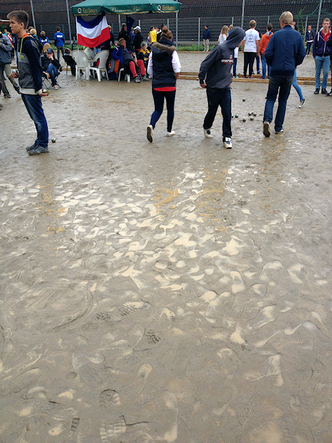 Deutschen Jugendmeisterschaft in Mannheim-Käfertal Erfolgreiches Wochenende für die NRW-Jugend Deutscher Juniorenmeister Julia Reimers - Carl Rost - Lasse Stentenbach 3. Platz Minimes Joana Odenwälder - Finja Rieks - Jonas Madai Zur diesjährigen Jugend-DM fuhren wir mit insgesamt 10 Teams aus NRW. Wir trafen uns Freitag um 14.00 Uhr in Ratingen-Lintorf zur gemeinsamen Anreise mit 4 Kleinbussen und sammelten in Köln noch einige Mitspieler ein, ehe wir nach Mannheim durchstarten konnten. Um 18:30 waren wir endlich am Hotel. Wir beeilten uns, die Zimmer zu belegen, da wir noch eine Platzbesichtigung vornehmen wollten. Die Bouleanlage des SC Käfertal war riesig, die Plätze leicht sandig und gut bespielbar. Unsere Jugendlichen haben am gleichen Abend noch eine Trainingseinheit eingelegt und waren allgemein recht zufrieden mit den Platzverhältnissen. Die Organisation des SC Käfertal war bombastisch. Viele fleißige Helfer boten bereits am Freitag eine Vielzahl an Speisen und Getränken. Das Angebot war so vielfältig (Flammkuchen, Pizza, Steaks, Nudeln, Geschnetzeltes, Currywurst, Pommes …..), dass die Kinder meist nicht wussten, was sie nehmen sollten. Insgesamt eine tolle DM durch den SC Käfertal. Vielen Dank seitens des BPV NRW !!!! Zurück im Hotel setzten wir uns im Betreuerstab zusammen und berieten noch über Teamzusammensetzungen und Teambetreuungen Am nächsten Morgen und einem ausgiebigen Frühstück in einer Bäckerei fuhren wir bereits gegen 7:30 zum Platz, da die Einschreibung um 7:45 Uhr begann. Leider fing es bereits bei der Einschreibung an zu regnen und hörte an diesem Tag auch nicht mehr auf. Auf dem sandigen Gelände bildeten sich schnell matschige Stellen; im Laufe des Tages wurde es so schwierig, dass die meisten Kugeln dort liegen blieben, wo sie aufkamen. Viele Plätze ähnelten eher einer Wildschweinsuhle. Hauptsache die Jugendlichen hatten Spaß !!! Alle passten sich ohne zu murren den widrigen Wetterverhältnissen an und boten gute Leistungen. Zum Spielgeschehen Es wurde im „Schweizer System“ mit 60 Minuten Zeitlimit in der Vorrunde gespielt. Juniors (25 Mannschaften) und Cadets (24 Mannschaften) 5 Runden, die Minimes (12 Mannschaften) 4 Runden. Ergebnisse Vorrunde Juniors NRW 1 (Lasse Stentenbach, Carl Rost und Julia Reimers) Bilanz: 4 Siege und 1 Niederlage, als 4. platzierter das Viertelfinale der DM erreicht NRW 2 (Kerstin Lisner, Francesco Daniele und Helen Schuldhaus) Bilanz: 2 Siege und 3 Niederlagen, B-Turnier erreicht NRW 3 (Hanh Nguyen, Felix Rösner und Ales Matheis) Bilanz: 1 Sieg und 4 Niederlagen, B-Turnier erreicht NRW 4 (Nich Richter, Rene Vennes und William) Bilanz: 2 Siege und 3 Niederlagen, B-Turnier erreicht NRW 5 (mit Jessica Böhmer leider fielen ihre Spielpartner kurz vor der DM aus, so dass sie mit 2 Spielerinnen aus den anderen Fachverbänden spielen musste) Bilanz: 1 Sieg und 4 Niederlagen, B-Turnier erreicht Ergebnisse Vorrunde Cadets NRW 1 (Nicole Leibelt, Timor Bohn und Jan-Luca Odenwälder) Bilanz: 2 Siege und 3 Niederlagen, B-Turnier erreicht NRW 2 (Anna Nguyen, Lisa Klapdor und Denise Reimers) Bilanz: 2 Siege und 3 Niederlagen, B-Turnier erreicht NRW 3 (Melissa Bruchmann, Marvin Dünnwald und Lucas Durst) Bilanz: 0 Siege und 5 Niederlagen, B-Turnier erreicht NRW 4 (Jonas Flüß, Andre Thissen und Philipp Krönert) Bilanz: 3 Siege und 2 Niederlagen, B-Turnier erreicht Ergebnisse Vorrunde Minimes NRW 1 (Joana Odenwälder, Finja Rieks und Jonas Madai) Bilanz: 3 Siege 1 Niederlage; als 2. platzierter Viertelfinale DM erreicht. Lasse nahm noch am Tireurwettbewerb teil und schloss die Vorrunde mit 32 Punkten als Bester ab. Halbfinale erreicht. Das sollte die höchste Punktezahl an diesem Wochenende bleiben !!! Glückwunsch !!! Am Sonntag ging es mit den Achtelfinals im B-Turnier zunächst weiter: Bei den Juniors erreichten NRW 2 mit Sieg gegen BaWü 2 und bei den Cadets NRW 2 mit Sieg gegen NiSa 2 das Viertelfinale. Die anderen Teams verloren leider oft mit knappen Ergebnissen. Pünktlich zu den Viertelfinals ließ der Regen nach. Die Plätze waren so aufgeweicht, dass sie nicht mehr bespielbar waren. Die fleißigen Helfer des SC Käfertal hatten in den frühen Morgenstunden bereits die Gehwege um das Fußballstadion präpariert, so dass dort weitergespielt wurde. Die Verhältnisse konnten als fair und schwierig bezeichnet werden. Über Betonboden wurde eine leichte Kiesschicht gelegt. Viertelfinale Im A-Turnier musste NRW 1 direkt gegen NiSa 1 ran, die ihnen am Vortag die einzige Niederlage beigebracht hatten. Diesmal kam die Revanche; und wie beim Stande von 8:10 beendeten unsere Junioren die Partie mit einem Fünfer !!! Ebenfalls im A-Turnier mussten unsere Minimes gegen Hessen 2 ran. Mit einem tollen Spiel besiegten sie Hessen 2 mit 13:8 !!!!! Hierbei muss gesagt werden, dass alle drei Spieler/innen erst seit einigen Monaten dem Boulesport nachgehen. Im B-Turnier bezwang unser Junior Team NRW 2 das Team von Rhpfl 1 wie in der Vorrunde mit 13:9 Ebenfalls im B-Turnier unterlag das Cadet Team NRW 2 gegen NiSa 1 mit 7:11 Halbfinale Im A-Turnier spielte unser Junior Team NRW 1 gegen den Topfavoriten aus BaWü 1, dem DPV Kaderteam 2 der 3 Spieler haben gerade erst für Deutschland die WM gespielt. Mit einer wirklich sehr guten Leistung und einem tollen Teamspirit wurde das Topteam aus BaWü mit 13:8 besiegt. Sie hatten nie die Chance, ins Spiel zu kommen. Im A-Turnier der Minimes spielte NRW 1 ebenfalls gegen das Topteam BaWü 1 und unterlag in einer äußerst spannend geführten Partie unglücklich mit 10:13. 3. Platz erreicht !!! Auch, wenn die Mannschaft etwas traurig war, ist es ein toller Erfolg für unsere Jüngsten. Im B-Turnier waren unsere Juniors NRW 2 leider Chancenlos und unterlagen Bayern 1 mit 3:13. 3.Platz im B-Turnier erreicht. !!! Glückwunsch !!! Lasse musste noch das Halbfinale im Tireurwettbewerb gegen Lucia Beil, einer Nationalspielerin aus Bayern, bestreiten und unterlag mit 18:23. Toller 3. Platz für Las