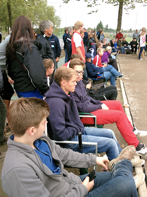 Deutschen Jugendmeisterschaft in Mannheim-Käfertal Erfolgreiches Wochenende für die NRW-Jugend Deutscher Juniorenmeister Julia Reimers - Carl Rost - Lasse Stentenbach 3. Platz Minimes Joana Odenwälder - Finja Rieks - Jonas Madai Zur diesjährigen Jugend-DM fuhren wir mit insgesamt 10 Teams aus NRW. Wir trafen uns Freitag um 14.00 Uhr in Ratingen-Lintorf zur gemeinsamen Anreise mit 4 Kleinbussen und sammelten in Köln noch einige Mitspieler ein, ehe wir nach Mannheim durchstarten konnten. Um 18:30 waren wir endlich am Hotel. Wir beeilten uns, die Zimmer zu belegen, da wir noch eine Platzbesichtigung vornehmen wollten. Die Bouleanlage des SC Käfertal war riesig, die Plätze leicht sandig und gut bespielbar. Unsere Jugendlichen haben am gleichen Abend noch eine Trainingseinheit eingelegt und waren allgemein recht zufrieden mit den Platzverhältnissen. Die Organisation des SC Käfertal war bombastisch. Viele fleißige Helfer boten bereits am Freitag eine Vielzahl an Speisen und Getränken. Das Angebot war so vielfältig (Flammkuchen, Pizza, Steaks, Nudeln, Geschnetzeltes, Currywurst, Pommes …..), dass die Kinder meist nicht wussten, was sie nehmen sollten. Insgesamt eine tolle DM durch den SC Käfertal. Vielen Dank seitens des BPV NRW !!!! Zurück im Hotel setzten wir uns im Betreuerstab zusammen und berieten noch über Teamzusammensetzungen und Teambetreuungen Am nächsten Morgen und einem ausgiebigen Frühstück in einer Bäckerei fuhren wir bereits gegen 7:30 zum Platz, da die Einschreibung um 7:45 Uhr begann. Leider fing es bereits bei der Einschreibung an zu regnen und hörte an diesem Tag auch nicht mehr auf. Auf dem sandigen Gelände bildeten sich schnell matschige Stellen; im Laufe des Tages wurde es so schwierig, dass die meisten Kugeln dort liegen blieben, wo sie aufkamen. Viele Plätze ähnelten eher einer Wildschweinsuhle. Hauptsache die Jugendlichen hatten Spaß !!! Alle passten sich ohne zu murren den widrigen Wetterverhältnissen an und boten gute Leistungen. Zum Spielgeschehen Es wurde im „Schweizer System“ mit 60 Minuten Zeitlimit in der Vorrunde gespielt. Juniors (25 Mannschaften) und Cadets (24 Mannschaften) 5 Runden, die Minimes (12 Mannschaften) 4 Runden. Ergebnisse Vorrunde Juniors NRW 1 (Lasse Stentenbach, Carl Rost und Julia Reimers) Bilanz: 4 Siege und 1 Niederlage, als 4. platzierter das Viertelfinale der DM erreicht NRW 2 (Kerstin Lisner, Francesco Daniele und Helen Schuldhaus) Bilanz: 2 Siege und 3 Niederlagen, B-Turnier erreicht NRW 3 (Hanh Nguyen, Felix Rösner und Ales Matheis) Bilanz: 1 Sieg und 4 Niederlagen, B-Turnier erreicht NRW 4 (Nich Richter, Rene Vennes und William) Bilanz: 2 Siege und 3 Niederlagen, B-Turnier erreicht NRW 5 (mit Jessica Böhmer leider fielen ihre Spielpartner kurz vor der DM aus, so dass sie mit 2 Spielerinnen aus den anderen Fachverbänden spielen musste) Bilanz: 1 Sieg und 4 Niederlagen, B-Turnier erreicht Ergebnisse Vorrunde Cadets NRW 1 (Nicole Leibelt, Timor Bohn und Jan-Luca Odenwälder) Bilanz: 2 Siege und 3 Niederlagen, B-Turnier erreicht NRW 2 (Anna Nguyen, Lisa Klapdor und Denise Reimers) Bilanz: 2 Siege und 3 Niederlagen, B-Turnier erreicht NRW 3 (Melissa Bruchmann, Marvin Dünnwald und Lucas Durst) Bilanz: 0 Siege und 5 Niederlagen, B-Turnier erreicht NRW 4 (Jonas Flüß, Andre Thissen und Philipp Krönert) Bilanz: 3 Siege und 2 Niederlagen, B-Turnier erreicht Ergebnisse Vorrunde Minimes NRW 1 (Joana Odenwälder, Finja Rieks und Jonas Madai) Bilanz: 3 Siege 1 Niederlage; als 2. platzierter Viertelfinale DM erreicht. Lasse nahm noch am Tireurwettbewerb teil und schloss die Vorrunde mit 32 Punkten als Bester ab. Halbfinale erreicht. Das sollte die höchste Punktezahl an diesem Wochenende bleiben !!! Glückwunsch !!! Am Sonntag ging es mit den Achtelfinals im B-Turnier zunächst weiter: Bei den Juniors erreichten NRW 2 mit Sieg gegen BaWü 2 und bei den Cadets NRW 2 mit Sieg gegen NiSa 2 das Viertelfinale. Die anderen Teams verloren leider oft mit knappen Ergebnissen. Pünktlich zu den Viertelfinals ließ der Regen nach. Die Plätze waren so aufgeweicht, dass sie nicht mehr bespielbar waren. Die fleißigen Helfer des SC Käfertal hatten in den frühen Morgenstunden bereits die Gehwege um das Fußballstadion präpariert, so dass dort weitergespielt wurde. Die Verhältnisse konnten als fair und schwierig bezeichnet werden. Über Betonboden wurde eine leichte Kiesschicht gelegt. Viertelfinale Im A-Turnier musste NRW 1 direkt gegen NiSa 1 ran, die ihnen am Vortag die einzige Niederlage beigebracht hatten. Diesmal kam die Revanche; und wie beim Stande von 8:10 beendeten unsere Junioren die Partie mit einem Fünfer !!! Ebenfalls im A-Turnier mussten unsere Minimes gegen Hessen 2 ran. Mit einem tollen Spiel besiegten sie Hessen 2 mit 13:8 !!!!! Hierbei muss gesagt werden, dass alle drei Spieler/innen erst seit einigen Monaten dem Boulesport nachgehen. Im B-Turnier bezwang unser Junior Team NRW 2 das Team von Rhpfl 1 wie in der Vorrunde mit 13:9 Ebenfalls im B-Turnier unterlag das Cadet Team NRW 2 gegen NiSa 1 mit 7:11 Halbfinale Im A-Turnier spielte unser Junior Team NRW 1 gegen den Topfavoriten aus BaWü 1, dem DPV Kaderteam 2 der 3 Spieler haben gerade erst für Deutschland die WM gespielt. Mit einer wirklich sehr guten Leistung und einem tollen Teamspirit wurde das Topteam aus BaWü mit 13:8 besiegt. Sie hatten nie die Chance, ins Spiel zu kommen. Im A-Turnier der Minimes spielte NRW 1 ebenfalls gegen das Topteam BaWü 1 und unterlag in einer äußerst spannend geführten Partie unglücklich mit 10:13. 3. Platz erreicht !!! Auch, wenn die Mannschaft etwas traurig war, ist es ein toller Erfolg für unsere Jüngsten. Im B-Turnier waren unsere Juniors NRW 2 leider Chancenlos und unterlagen Bayern 1 mit 3:13. 3.Platz im B-Turnier erreicht. !!! Glückwunsch !!! Lasse musste noch das Halbfinale im Tireurwettbewerb gegen Lucia Beil, einer Nationalspielerin aus Bayern, bestreiten und unterlag mit 18:23. Toller 3. Platz für Las