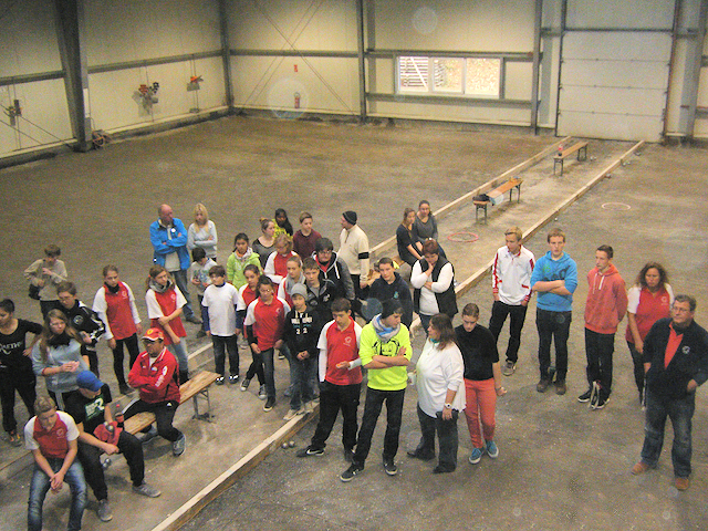 Gelungene Jugend-Landesmeisterschaft in der Halle Organisiert wurde die 2. offene LM der Jugend in der Düsseldorfer Boulehalle vom Jugend-Ausschuss NRW um den neuen kommissarischen Jugendwart Uwe Zipter, Sandra Schneider, Andreas Menzen (komm.) und Martin Wleklik. Die Verlegung vom sonntäglichen Feiertag auf den Samstag hatte einen äußerst positiven Nebeneffekt auf die Teilnehmerzahl. Insgesamt gingen 45 Kinder und Jugendliche aus rekordverdächtigen sechs Landesverbänden an den Start. Die befreundeten Verbände aus Niedersachsen und Hessen schickten eine bzw. fünf (!) komplette Mannschaften in den Wettbewerb. Die nordrhein-westfälischen SpielerInnen equipierten sich darüber hinaus auch mit Teilnehmern aus Baden-Württemberg, Bayern und Rheinland-Pfalz. Nach der Begrüßung durch Uwe Zipter begann das Turnier für die acht Juniors- und sieben Cadets-Triplettes, darunter ein reines Minimes-Team von dem später noch die Rede sein wird, mit vier Vorrundenspielen nach Schweizer System. Nach vielen spannenden Partien ergaben sich bei den Cadets und Juniors folgende Ranglisten: