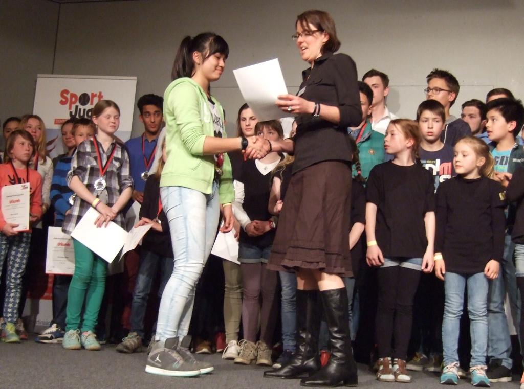Pétanque-Sport in Aachen, die fünfte Finja Eiken (NRW-Meisterin Minimes), Anna (3. Platz Cadets) und Hanh Nguyen (3. Platz Juniors) wurden Bei der 9. Jugendsportlerehrung am 7. Mai 2015 für ihre sportlichen Leistungen im vergangenen Jahr von der Stadt Aachen und der Sportjugend geehrt. Als der Festsaal mit gut 600 Gästen gefüllt war, wurde spontan und fröhlich ein Geburtstagsständchen angestimmt. Wer hatte wohl Geburtstag? ... Oberbürgermeister Marcel Philipp lässt es sich nicht nehmen, auch an seinem Geburtstag, Urkunden und Medaillen an die Jugendlichen zu verteilen. Frau Daniela Dreymüller, 1. Vorsitzende Sportjugend Aachen, begann mit der Eröffnungsrede. Die Ehrungen der 193 jungen Sportler und Sportlerinnen verschiedener Sportdisziplinen wurden dann vom Oberbürgermeister Marcel Philipp sowie dem 1. Vorsitzenden des Stadtsportbundes Aachen, Björn Jansen, durchgeführt. Zum Abschluss der Veranstaltung gab es eine schwungvolle Tanzshow der Hip-Hop Gruppe RAEVOLUTION, in der Hanh Nguyen zufälligerweise auch tanzt! Cuong Nguyen |