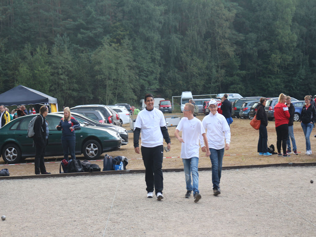 Über das gesamte DM-Wochenende herrschte rundherum ein gute Stimmung im Team, egal ob alte „DM-Hasen“ oder „Erst-DM-Teilnehmer“, Spieler/in, Coach oder Eltern – wir traten als NRW gemeinsam auf und hatten Spaß! Auch unser Busfahrer Bernd leistete einen unschätzbaren Beitrag zu unserem Erfolg! Aufgrund seiner herausragenden Fahrdienste – diejenigen die die „Waldstraße“ zum Bouleplatz in Tromm kennen, werden es verstehen – sowie aufgrund seiner Fürsprache für unser NRW-Team bzgl. der Cateringportionen, wurde er zum "Ehrenmitglied" des NRW-Teams ernannt! An dem DM-Wochenende verstärkten sogar einige Schlachtenbummler zeitweise unser Team. Wie Familie Grundmann am Samstag, um den Geburtstag von Lina zu feiern oder Familie Lichte und Familie Jöris, um am Sonntag bei den Finalspielen anzufeuern und mitzufeiern.