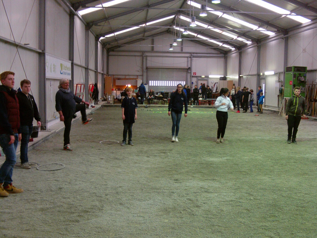 Am Nachmittag wurden dann – entsprechend des zweiten „T“-Schwerpunkts 10 Ateliers aufgebaut, die die Jugendlichen in Dreier-Gruppen zu bewerkstelligen hatten! Am Boden lagen jeweils zwei Kugeln vom Gegner und zwei Kugeln der eigenen Mannschaft in unterschiedlichsten Konstellationen – jedoch immer mit Punkt beim Gegner!