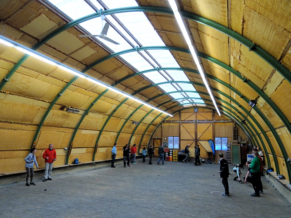 Was gibt es da Besseres als eine Partie Boule in einer trockenen, warmen Halle mit anderen netten Leuten zu spielen?