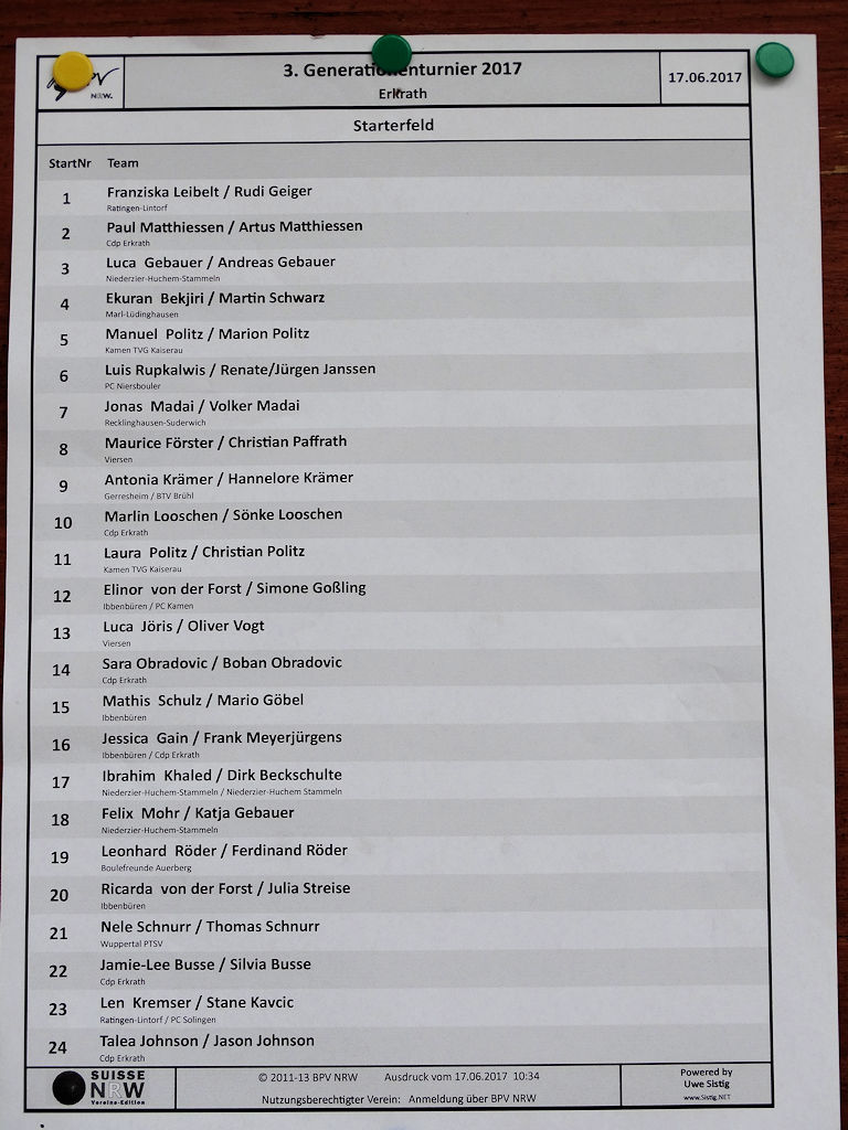 Ergebnisse vom 3. Genartionenturnier 2017