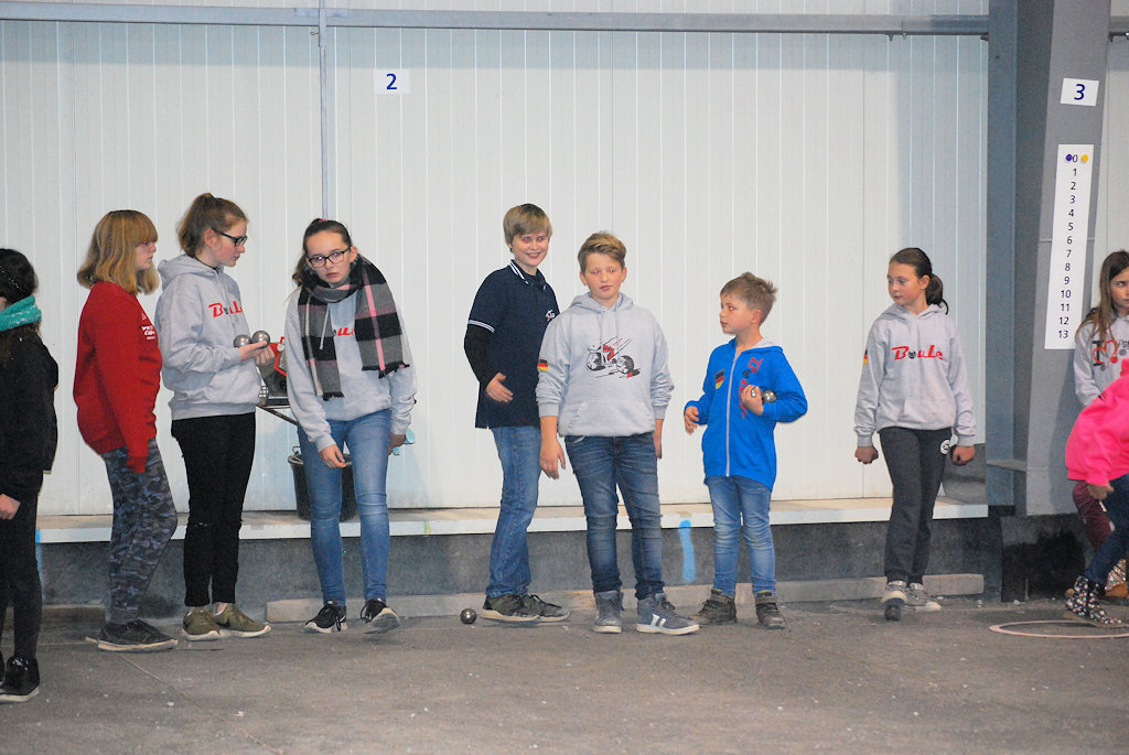 Am 18.11.2017 fand in der Düsseldorfer Boule-Halle die 7. offene Jugend LM statt. Mit 63 aktiven Teilnehmern in 21 Teams aus insgesamt 4 Landesverbänden haben wir das gute Ergebnis vom Vorjahr halten können, das nationale Interesse an unser LM ist groß. Erfreulich war auch die große Anzahl an interessierten Eltern, Großeltern und Besuchern, die Halle war gut gefüllt. Mit leichter Verspätung ging es dann kurz nach 10:00 Uhr endlich los, geplant waren fünf Runden Schweizer System, bei den Junioren spielten 6 Teams, bei den Cadets 10 Teams, nur bei den Minimes hatten wir mit 5 Teams eine ungerade Zahl und mussten leider mit Freilos spielen.