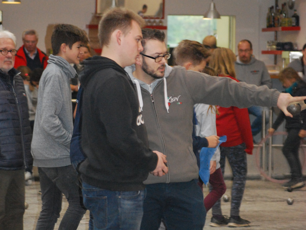 Am 18.11.2017 fand in der Düsseldorfer Boule-Halle die 7. offene Jugend LM statt. Mit 63 aktiven Teilnehmern in 21 Teams aus insgesamt 4 Landesverbänden haben wir das gute Ergebnis vom Vorjahr halten können, das nationale Interesse an unser LM ist groß. Erfreulich war auch die große Anzahl an interessierten Eltern, Großeltern und Besuchern, die Halle war gut gefüllt. Mit leichter Verspätung ging es dann kurz nach 10:00 Uhr endlich los, geplant waren fünf Runden Schweizer System, bei den Junioren spielten 6 Teams, bei den Cadets 10 Teams, nur bei den Minimes hatten wir mit 5 Teams eine ungerade Zahl und mussten leider mit Freilos spielen.