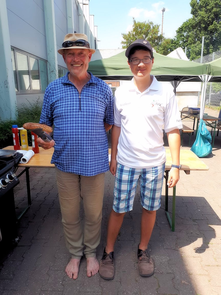 Gespielt wurde natürlich auch, hier ist noch kurz zu erwähnen das auch bei heißen Temperaturen und einem Generationenturnier festes Schuhwerk getragen werden muss. Hier besorgte unser Gastgeber ganz unproblematisch ein Schuhwerk Größe 47 für den Sandalenträger, so dass die Sicherheit wieder hergestellt war.