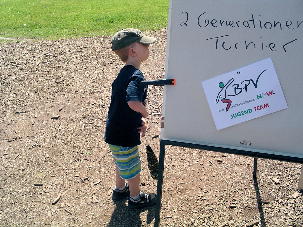 Bei Kaiserwetter fanden sich diesmal 13 Jugendliche mit ihren Erwachsenen Spielpartner auf der schönen Anlage in Viersen ein, besonders erfreulich war dabei, das einige zum ersten Male zu uns gefunden hatten. Das noch Pfingstferien waren beeinträchtige ein wenig die Teilnehmerzahl. Der Gastgeber hatte alles perfekt vorbereitet, so dass wir kurz nach 11:00 Uhr mit dem Turnier beginnen konnten.