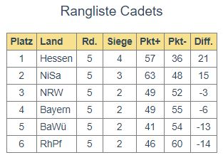 BaWü konnte sich nach einem spannenden Spiel gegen die Hessen durchsetzen und sicherte sich somit Platz 2 in der Gesamtwertung. Durch unsere Niederlage und den zeitgleichen Sieg der Bayern ging der 3. Platz ebenfalls in den Süden. Für NRW blieb somit der 4. Platz.