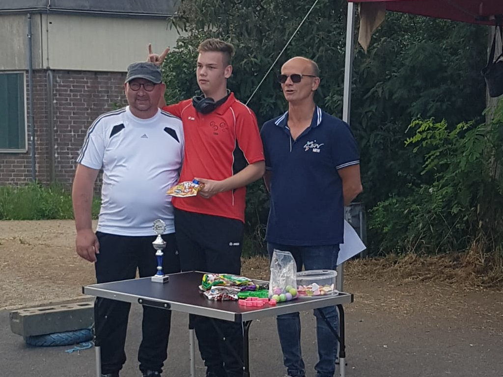 Nach 4 spannenden Runden und schönem Wetter standen die ersten drei Sieger fest, den 1. Platz belegte Jamie-Lee Busse mit Silvia Busse, den 2. Platz belegte Jonas Madai mit Berthold Ulrich und zu guter Letzt belegten den 3. Platz Franzi Hachmann mit Peter Skotnik. Alle Jugendlichen erhielten ein Cochonnet (Schweinchen), eine Packung Süßigkeiten und der 1. Platz erhielt zudem noch einen kleinen Pokal.