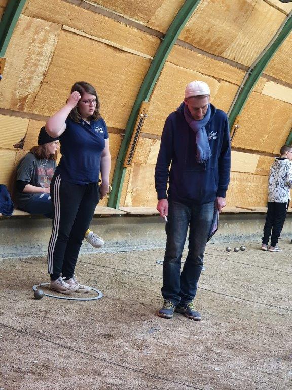 Am Sonntagmorgen ging es dann mit einem Aufwärmprogramm u.a. mit Boule-Biathlon weiter. Während die Jugendlichen draußen spielerisch Spaß hatten, wurde in der Halle die dritte Trainingseinheit mit dem Thema vorausschauendes, taktisches Spiel aufgebaut. Hier gab es einige anspruchsvolle Übungen die teilweise hervorragend absolviert wurden. Moritz sowie das ganze Betreuer Team waren beeindruckt von der Motivation und Konzentration der Jugendlichen an diesem Wochenende, was als gute Voraussetzung für die weitere Entwicklung des Nachwuchses bewertet wurde.