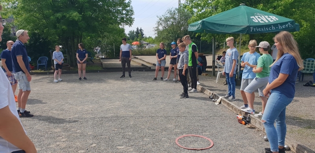 Zu Beginn hat Rudi Geiger ein kleines Aufwärmtraining mit allen Jugendlichen gemacht. Danach hat sich jeder eine Kugel geschnappt und es wurde ausgespielt wer mit wem spielt, dann wurden zwei entspannte Runden gespielt, wobei alle viel Spaß hatten. Aber es wurde nicht nur Boule gespielt, sondern man konnte auch Federball oder Tic Tac Toe spielen. Die vier Neulinge Anna Pirwitz, Barbara Hasenberg, Luca Weßdbaum und Emil Schüring wurden von allen sehr gut eingebunden und alle haben sich gut verstanden.