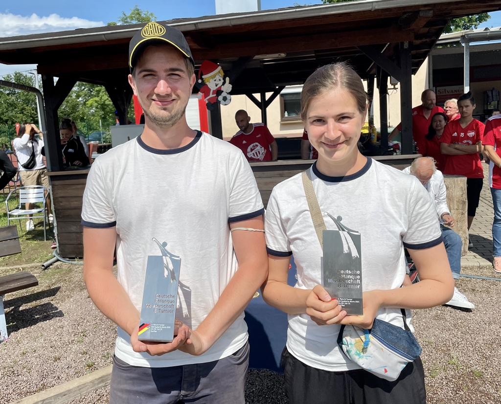 Hier waren leider, besonders nach der Regenunterbrechung, die erfahrenen Daniel Härter und Liane Baumgartner-Buck überlegen und auch die Unterstützung einiger verbliebener NRW SpielerInnen konnte da nicht helfen. Tolle Spiele, sympathisches Auftreten, Platz 2 im B-Turnier der DM Mixte 2021