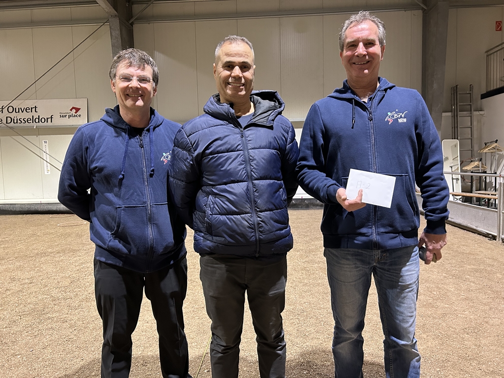 Wieder einmal war die Düsseldorfer Boulehalle am 04. Februar 2023 Schauplatz eines großen Events der Wintersaison. Landescoach Berthold Ulrich hatte (gemeinsam mit Vize-Sport Bernd Lubitz und Kadersprecher Danny Griesberg) 24 Teams zum diesjährigen Kaderturnier „BPV NRW Hallen-Grandprix“ eingeladen. Einige Triplettes bestanden aus KaderspielerInnen bzw. Mitgliedern des Kader-Pools. Dazu kamen einige Triplettes, die die Sportchefs des Niedersächsischen und des Hessischen Landesverbandes auf unsere Einladung hin entsendet hatten; komplettiert wurde das Feld durch SpielerInnen, die sich aufgrund Ihrer zuletzt erzielten Ergebnisse als geeignet gezeigt hatten, den Kaderteams Paroli zu bieten. Für die Jüngeren unter Ihnen war es auch eine Gelegenheit, sich für zukünftige Kader-Aktionen zu empfehlen.