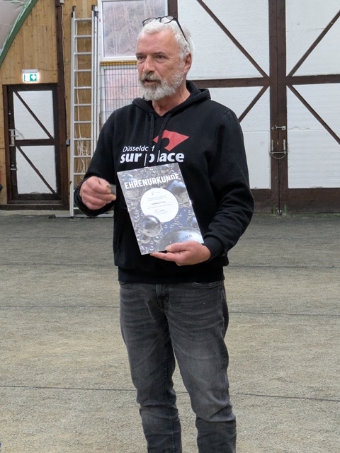 Bernd Lubitz als Vizepräsident Sport zeichnete Carolin Birkmeyer als anwesenden Deutschen Meisterin Tir de Précision 2023 und Anna Lazaridis für ihre internationalen Erfolge 2023 aus. Gemeinsam mit Berthold Ulrich und Thomas Gietmann wurde er dann selbst als Deutscher Meister Triplette 55plus von Jan Mensing (Vizepräsident Inneres) geehrt. Gleichzeitig wurde das neue Trikot des DPV, welches ab 2023 die Deutschen Meister erhalten, vorgestellt und überreicht.